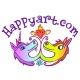 Marti McGinnis makes her "HappyArt" because as she puts it, "The world could use some more smiles!" She draws, paints, and writes out of a studio filled with color, light, and usually several animals. Her work focuses on joy, hope, and happiness.